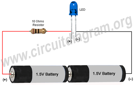Rangkaian LED paling dasar tidak lebih dari tiga komponen sederhana yaitu baterai, resistor sebegai penahan arus dan tentunya LED. Resistor berfungsi untuk menyesuaikan arus yang mengalir ke LED, karena jika LED dihubungkan secara langsung ke baterai dapat mengakibatkan LED cepat rusak.